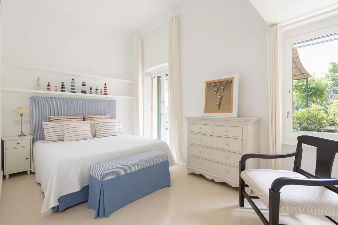 The upper floor hosts the sleeping area, with three refined suites designed to provide comfort and privacy.