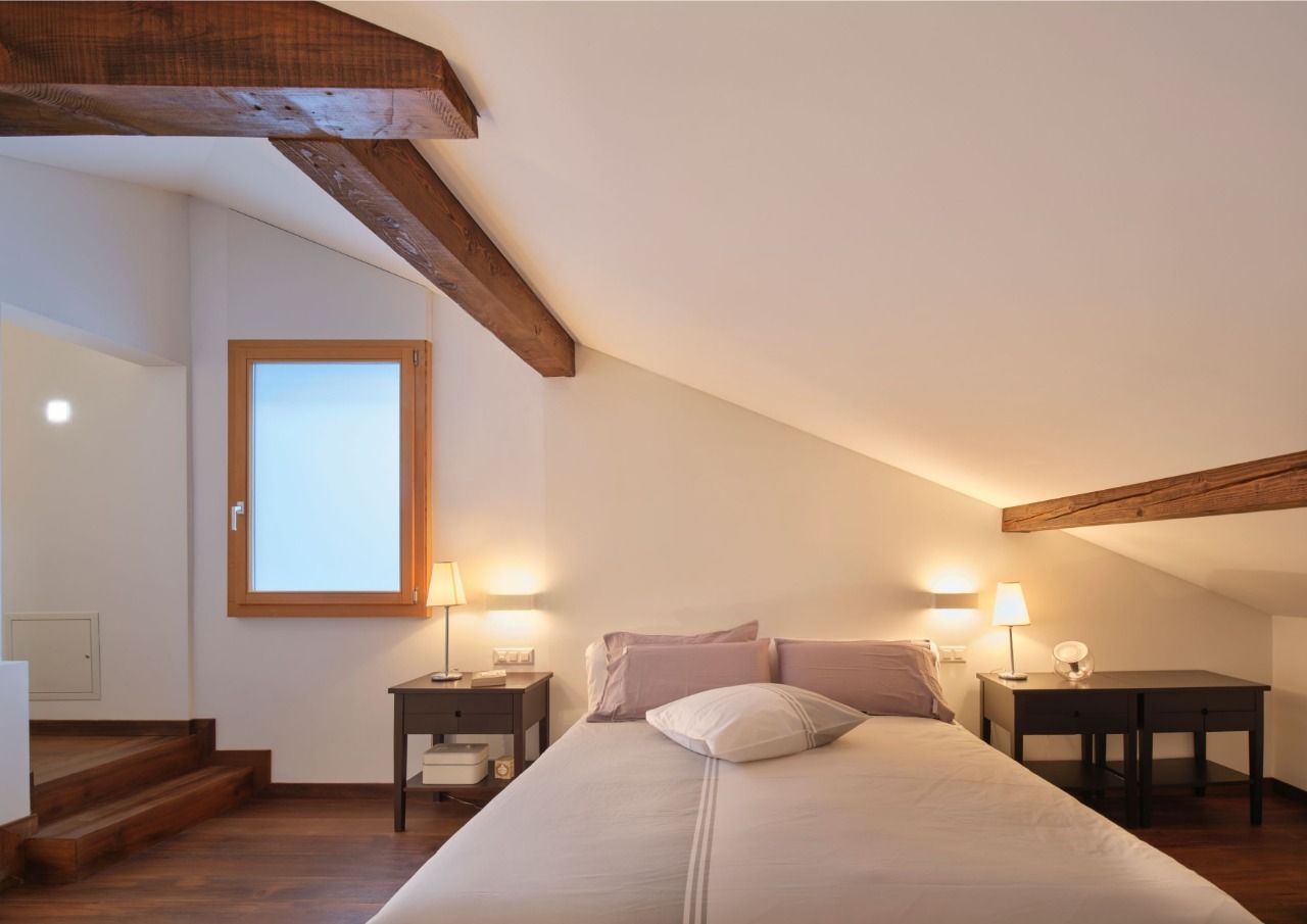 Set over two levels, the home features expansive, light-filled spaces thoughtfully designed for comfort and elegance. The lower floor boasts a double living room opening onto the terrace, a dining area with outdoor views, a fully equipped kitchen, and a guest bathroom.