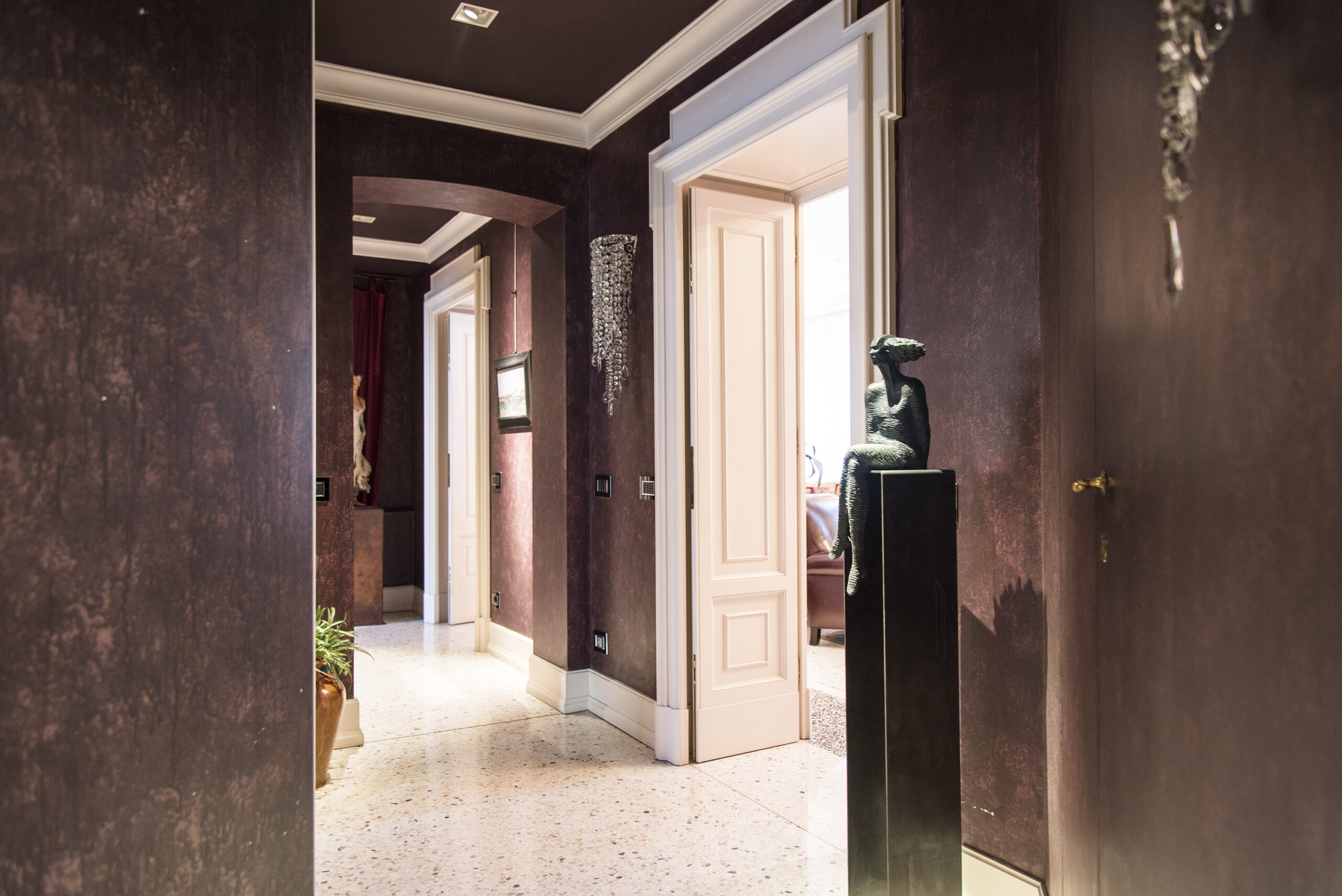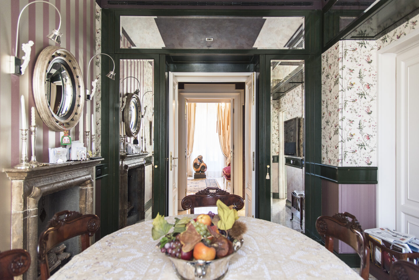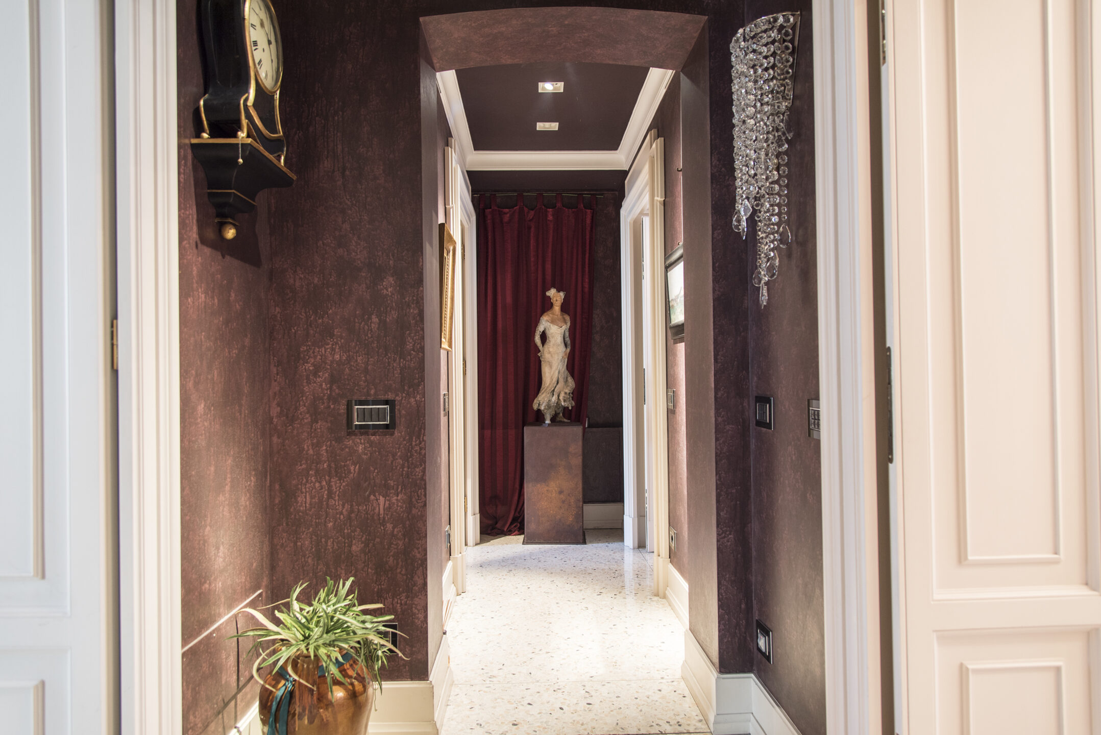 The home welcomes you with a gracious entrance leading to a spacious double living room with a fireplace and captivating views of Santa Maria delle Grazie. The living area is complemented by a study, a fully equipped kitchen with an adjoining dining room, a laundry room, and a guest bathroom.