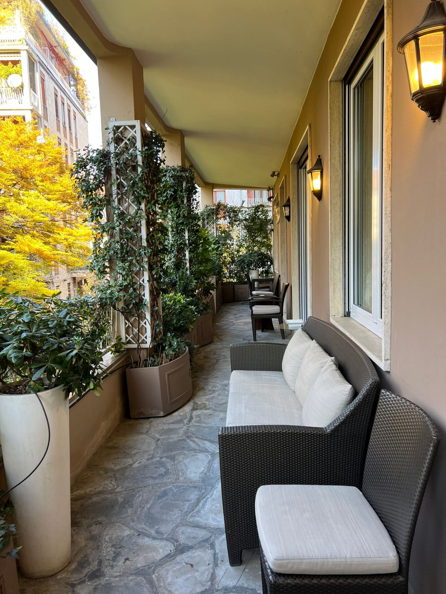 Una ampia balconata panoramica avvolge la proprietà, creando uno spazio perfetto per il relax all’aperto.